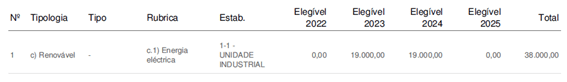 Aquisição, instalação e adoção inaugural por parte da empresa de uma unidade de produção de energia elétrica a partir de fonte de energia renovável para autoconsumo, neste caso uma unidade com 30kw de potência nominal e 35,9kw de potencia em pico, constituída por 80painéis de 460kWp e 1 inversor de 30kW.